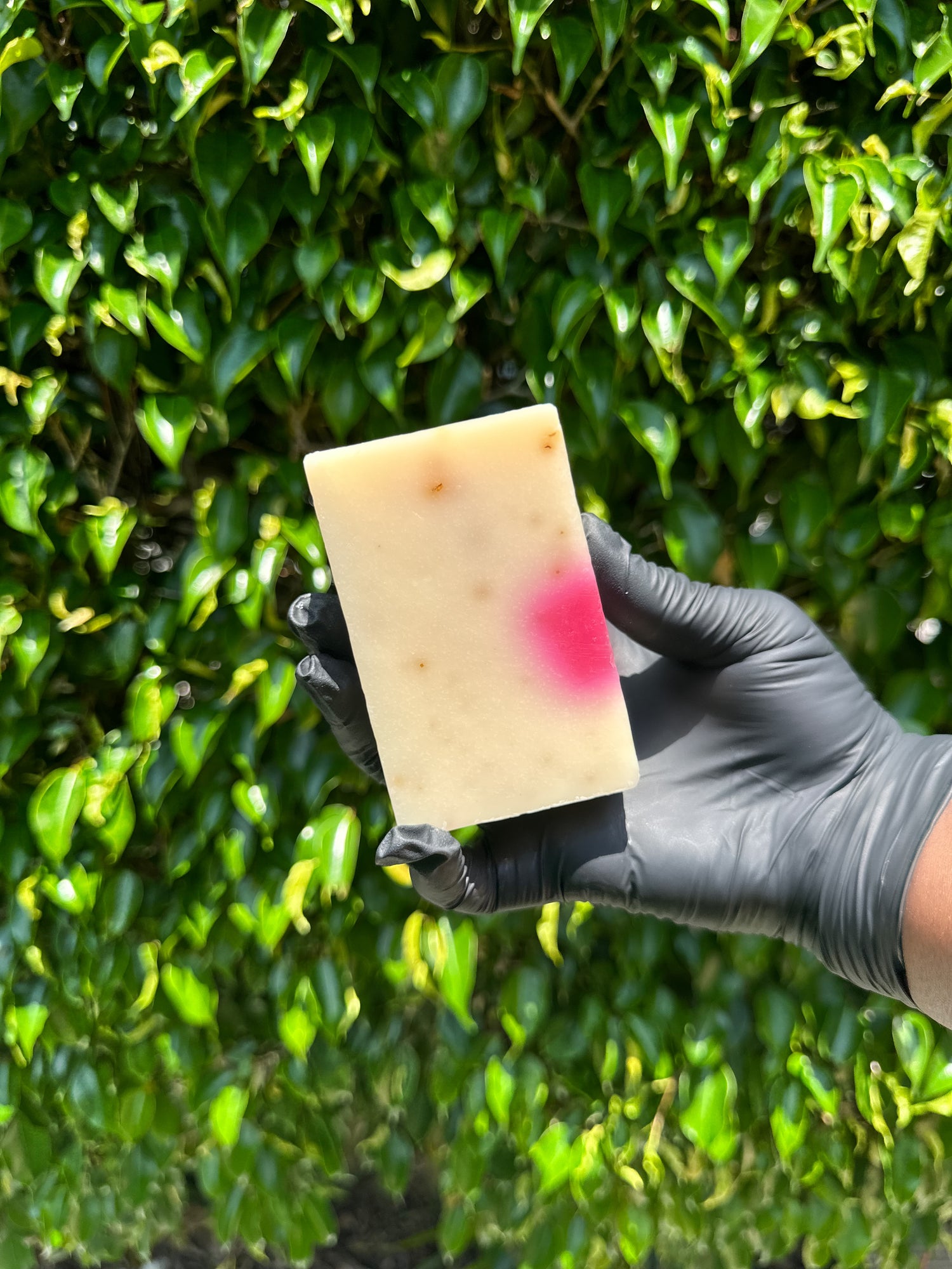 This soap is a true pleasure, simultaneously deep and made for a potent blend that doesn't overwhelm. The pure sweet floral scent and moisturizing oils, makes this the perfect bar for a shower or bath at any time of day. With petals to provide light exfoliation, this soap can't ever really be forgotten.